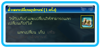 ตั๋วแลกเปลี่ยนอุปกรณ์ (1 ครั้ง) คือ ไอเทมที่สามารถทำให้ ไอเทมสวมใส่ เช่น อาวุธ ชุดเกราะ เครื่องประดับ ที่ไม่สามารถแลกเปลี่ยนได้ ให้สามารถแลกเปลี่ยนได้ 1 ครั้ง (ไอเทมสวมใส่ไม่รวม คอสตูม ประดับหลัง)