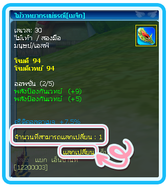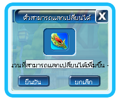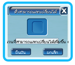 เมื่อเรากดคลิกขวาที่ไอเทม ตั๋วแลกเปลี่ยนอุปกรณ์ (1 ครั้ง) แล้วจะขึ้นหน้าต่างเล็กๆ ขึ้นมาทางด้านขวา จากนั้นให้เราเลือกไอเทมที่จะทำให้สามารถแลกเปลี่ยนได้ โดยการกดคลิกขวาที่ไอเทมนั้น (ถ้าไอเทมที่เลือกตรงตามเงื่อนไข ไอเทมชั้นนั้นจะเข้าไปอยู่ข้างในช่องทางหน้าต่างด้านขวา)