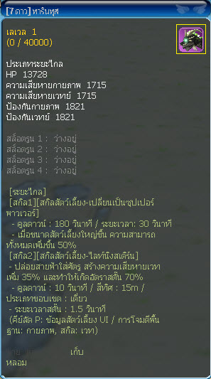 และบัฟพาหนะ เพิ่มความเร็วในการเคลื่อนที่+25% ระยะเวลา 1 ชั่วโมง